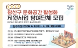 구청 이영욱 기자2026. 04.13[나이스데이]광주 광산구가 지역 유휴 문화공간을 열린 시민 문화 거점으로 활용하는 ‘2026년 문화공간 공유 활성화 지원사업’을 추진한다. 사용이 활발하지 않은 공공‧민간 문화공간을 시민의 문화 체험 및 예술 프로그램 운영 장소로 개방해, 시민 간의 문화적 연대를 강화하고 일상 속 문화 향유 기회를 확대한다는 취지다. 문화공간은 창작 예술 활동, 시민을 위한 여러 프로그램 운영이 가능한 시설로, 공연장, 전시시설, 도서관, 다중 이용 창작공간 등이 대표적 예다. 광산구는 23일까지 사업에 동참할 단체를 모집한다. 광산구에 문…