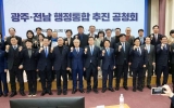 탑뉴스 뉴시스2026. 01.15[나이스데이] 더불어민주당과 전남도·광주시가 15일 광주·전남 행정 통합의 법적 근거가 될 특별법 공청회를 진행했다. 민주당 광주·전남 통합추친 특별위원회와 광주시, 전남도는 이날 국회 의원회관에서 '광주·전남 행정통합 추진 공청회'를 열고 각계 의견을 수렴했다. 민주당 광주전남행정통합추진특별위원회 공동위원장인 양부남 의원은 "행정 통합은 정치권에서 정치적 논리로 이뤄진 것이 아니라 인구 유출에 의한 지역 소멸, 지역 붕괴를 막기 위한 생존의 전략"이라고 했다. 이어 "통합이나 대의를 위해서는 광주시·전남도 지역이…