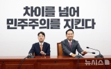 탑뉴스 뉴시스2026. 01.13[나이스데이] 더불어민주당의 한병도 신임 원내대표 체제가 13일 진용을 갖춘 가운데 원내대표단은 한목소리로 "사즉생 각오로 위기를 돌파하겠다"고 강조했다. 검찰개혁 등 남은 입법과 관련해서는 "당정 이견은 없다"고 거듭 선을 그었다. 한병도 원내대표는 이날 원내대책회의에서 "민주당 원내지도부는 사즉생의 각오로 위기를 돌파하도록 하겠다"며 "이재명 국민주권정부의 성공과 대한민국의 대도약을 위해 다시 신발끈을 매겠다"고 말했다. 한 원내대표는 당정이 검찰개혁 등과 관련해 의견이 일치된 '원보이스'라는 점도 강조했다. 당내…