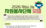 여수 손태성 기자2026. 01.12[나이스데이]여수시는 오늘(12일)부터 오는 2월 25일까지 ‘2026년 찾아가는 재능나눔 프로그램’에 참여할 자원봉사 단체를 모집한다. 해당 프로그램은 민간단체의 재능기부 활동으로 지역사회의 다양한 문제를 해결하고, 2026 여수세계섬박람회 개최 전 자원봉사자의 관심 유도 및 활성화를 위해 매년 추진되고 있다. 모집 대상은 ▲주거환경개선 ▲의료‧보건 ▲이‧미용 ▲음식 나눔 ▲박람회 홍보 등 5개 분야로 재능이 있고 6개월 이상 활동이 가능한 봉사단체다. 참여를 희망하는 단체는 시 누리집 공지사항을 참고하여 신청서 작성 후 전…