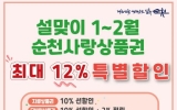광양 손태성 기자2025. 12.30[나이스데이]순천시가 새해와 설 명절을 맞아 2026년 1월부터 2월까지 두 달간 순천사랑상품권 할인 행사를 추진해 지역 소비 촉진에 나선다고 밝혔다. 지류상품권은 구매 시 10% 선할인이 적용되며, 모바일 순천사랑상품권은 10% 선할인에 더해 사용 금액의 2%를 후캐시백으로 제공해 최대 12%의 혜택을 받을 수 있다. 시는 이러한 할인 구조를 통해 명절을 앞둔 소비 수요를 지역 내 가맹점으로 집중 유도하고, 상품권 구매뿐 아니라 실제 사용까지 자연스럽게 이어지도록 설계했다고 설명했다. 특히 모바일 상품권의 경우 사용 후 혜…