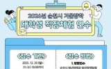 순천 손태성 기자2025. 12.23[나이스데이]순천시는 겨울방학을 맞아 대학생들에게 행정 현장 경험의 기회를 제공하기 위해 ‘2026년 겨울방학 대학생 직장체험 연수생’을 모집한다고 밝혔다. 접수 기간은 12월 29일부터 31일까지이며, 선발 인원은 총 25명이다. 신청 대상은 공고일(12월 22일) 기준 순천시에 주민등록을 두고 있는 대학교 재학생 또는 휴학생이면 지원할 수 있다. 다만, 현재 취업 중이거나 과거 행정인턴직장체험 참여 이력이 있는 경우에는 신청이 제한된다. 선발된 연수생은 2026년 1월 19일부터 2월 13일까지 4주간 순천시청 및 …