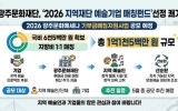 구례 민경구 기자2026. 04.09[나이스데이]광주문화재단은 한국문화예술위원회가 주관하는 ‘2026년 지역재단 예술기업 매칭펀드 지원사업’ 공모에 최종 선정돼 국비 6천5백만 원을 확보했다고 밝혔다. 재단은 이를 지방비와 1:1로 매칭하여 총 1억1천5백만 원 규모의 지원 사업을 추진할 계획이다. 해당 사업은 한국문화예술위원회가 올해 신설한 사업으로, 지역문화재단의 매칭 그랜트 사업에 문예진흥기금을 연계 지원하여 지역 예술계와 기업 간의 협력 기반을 강화하는 데 목적이 있다. 이번 선정은 재단이 메세나 사업의 기반을 강화하고, 매칭에 필요한 재정적 기틀…